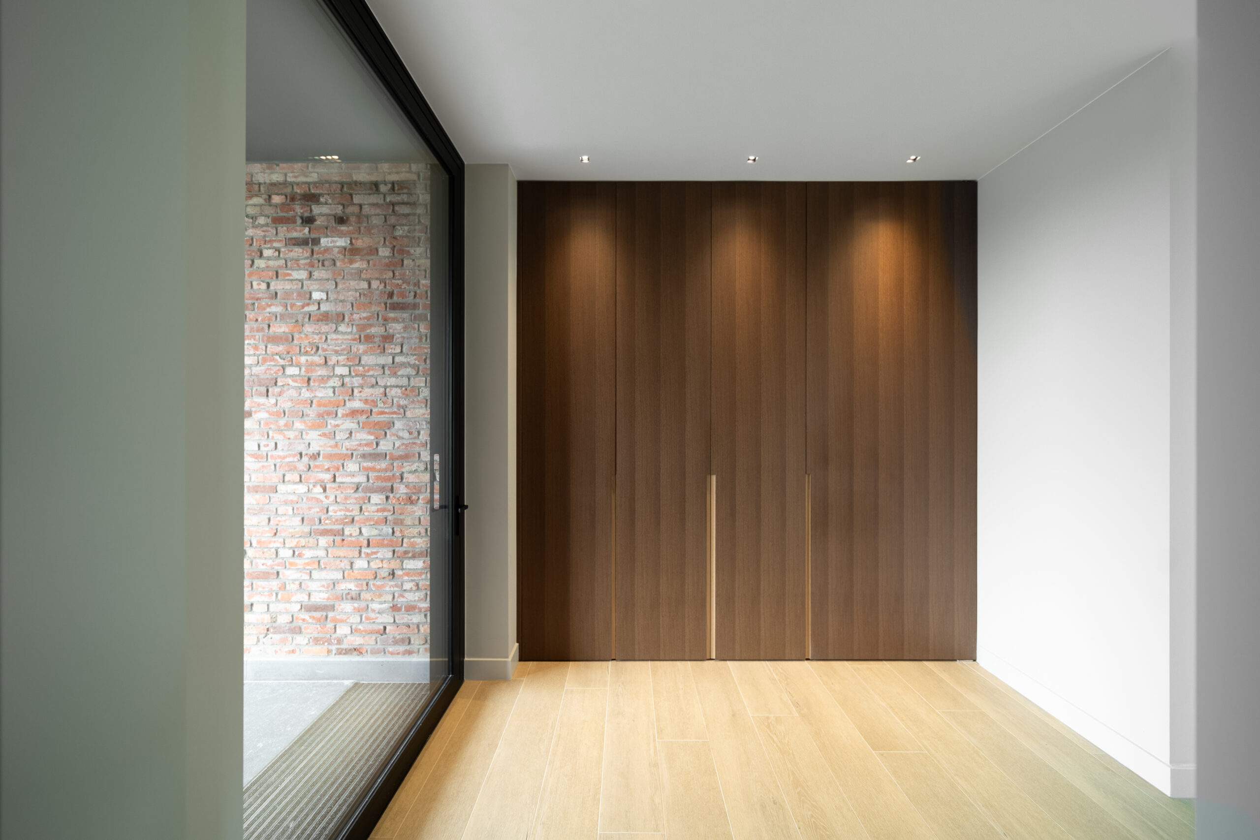 De villa in Aldeneik is het ultieme bewijs dat strakke architectuur en huiselijke warmte perfect kunnen samengaan. Door de groene omgeving als uitgangspunt te nemen, is er een woning ontstaan die rust ademt. De overgang van de ruwe bakstenen buitenmuren naar het verfijnde houtwerk binnen voelt volkomen natuurlijk aan. Het is een tijdloos meesterwerk geworden waar functionele esthetiek en de natuur elkaar in elk detail ontmoeten.